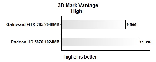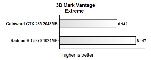 Gainward GTX 285 scores great in Vantage as well as in gaming tests, allowing for pleasant gaming at 2560x1600, but it can't cope with HD 5870. Unfortunately, the 2048MB of memory on Gainward's card adds to the price making it almost equal to the pricetag on Radeon HD 5870. Of course, Gainward offers five more different GTX 285 cards, and if saving money is your intent you can easily find up to €50 cheaper GTX 285 models.