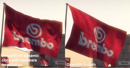 It's worth noting that DiRT 2 uses High Dynamic Range (HDR) lighting to provide a more realistic experience. While this has been solved by using the R8G8B8A8 texture format in DX9, DirectX 11 uses a full floating point G16B16A16 texture format, which allows for better color ranges without hindering color depth of the scenes and this should reflect on the rendering quality as well.